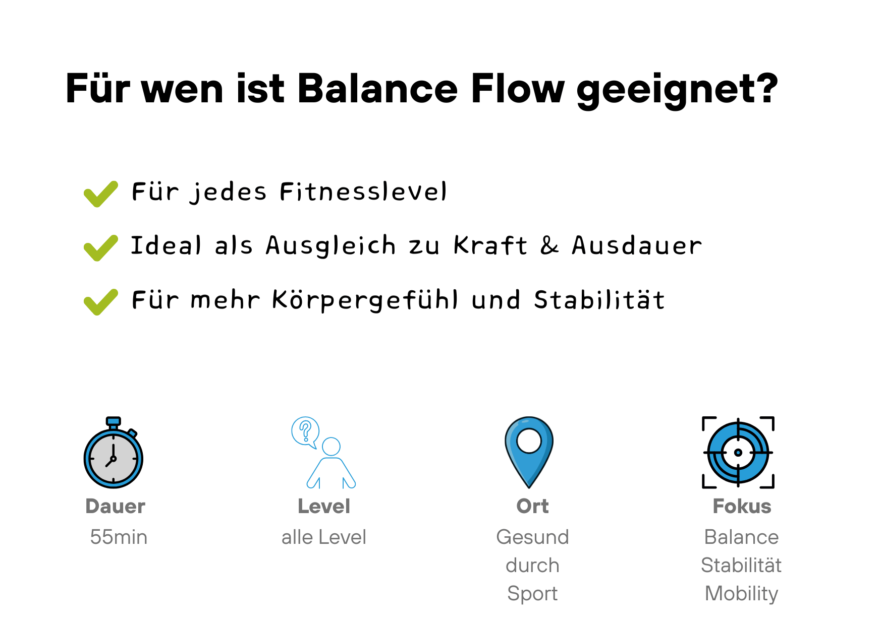 Balance Flow verbindet ruhige, flexible Bewegungen mit gezielten Balance und Stabilisationsübungen. Ziel ist eine starke Körpermitte, verbesserte Beweglichkeit und mehr Sicherheit im Alltag.