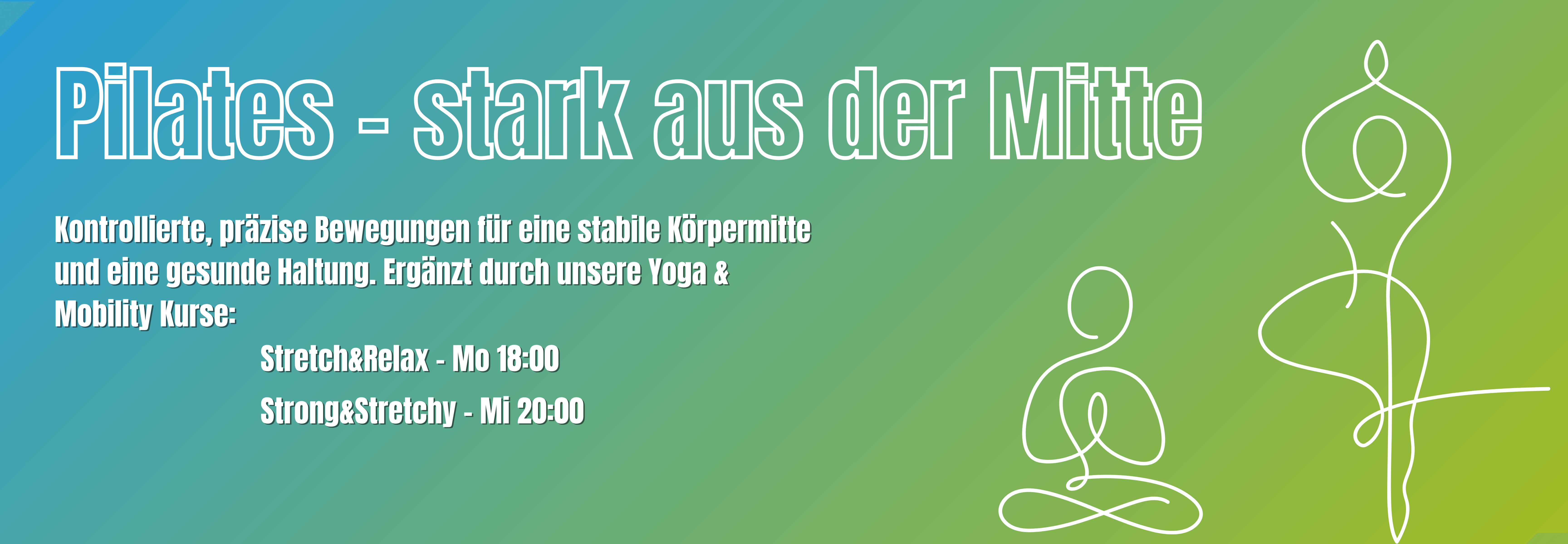Der Pilates Termin variiert – aktuelle Zeiten im Kursplan. Yoga & Mobility als perfekte Ergänzung:
